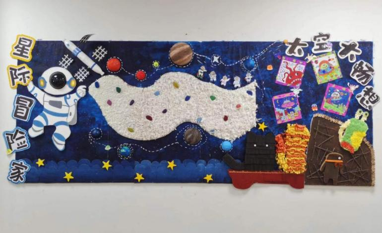 作品展从前期筹备到最终展出历时1月有余,分为海洋的呼唤、星际冒险家,时间嘀嗒、中国传统文化、你好春天等七个主题小组。整个环创围绕不同主题,运用各种材料从多角度充分体现了环境的教育性、互动性、参与性、过程性和艺术性,实现环境与课程、教学、幼儿以及家长之间的多元互动。