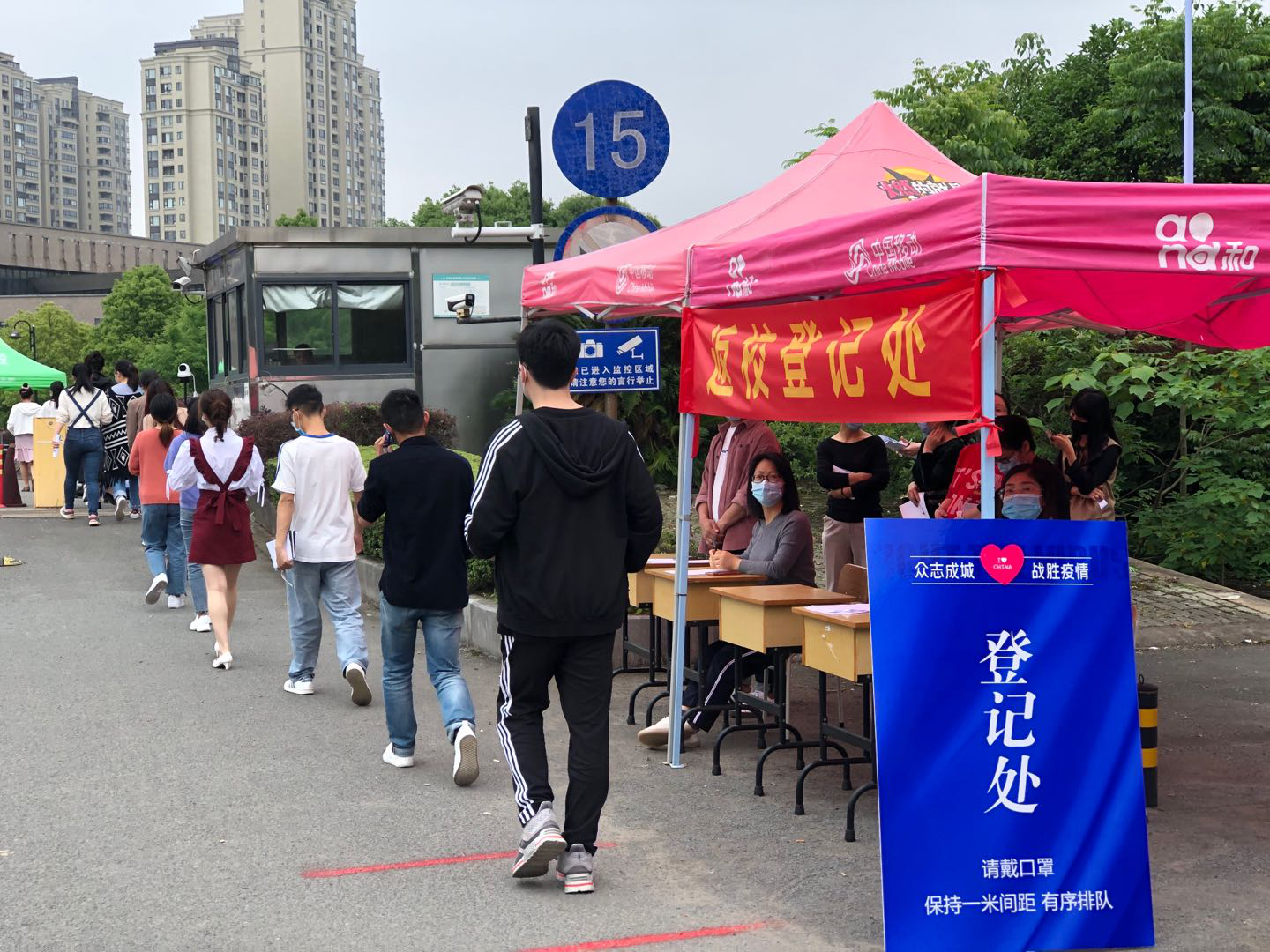 此次演练选取校门口、教室、食堂、宿舍四个场景开展培训和演练,对员工进校报到、上课、就餐、入寝检查、员工疑似患者上报、隔离安置等环节进行模拟。演练全程紧张有序,分工明确、配合紧密。