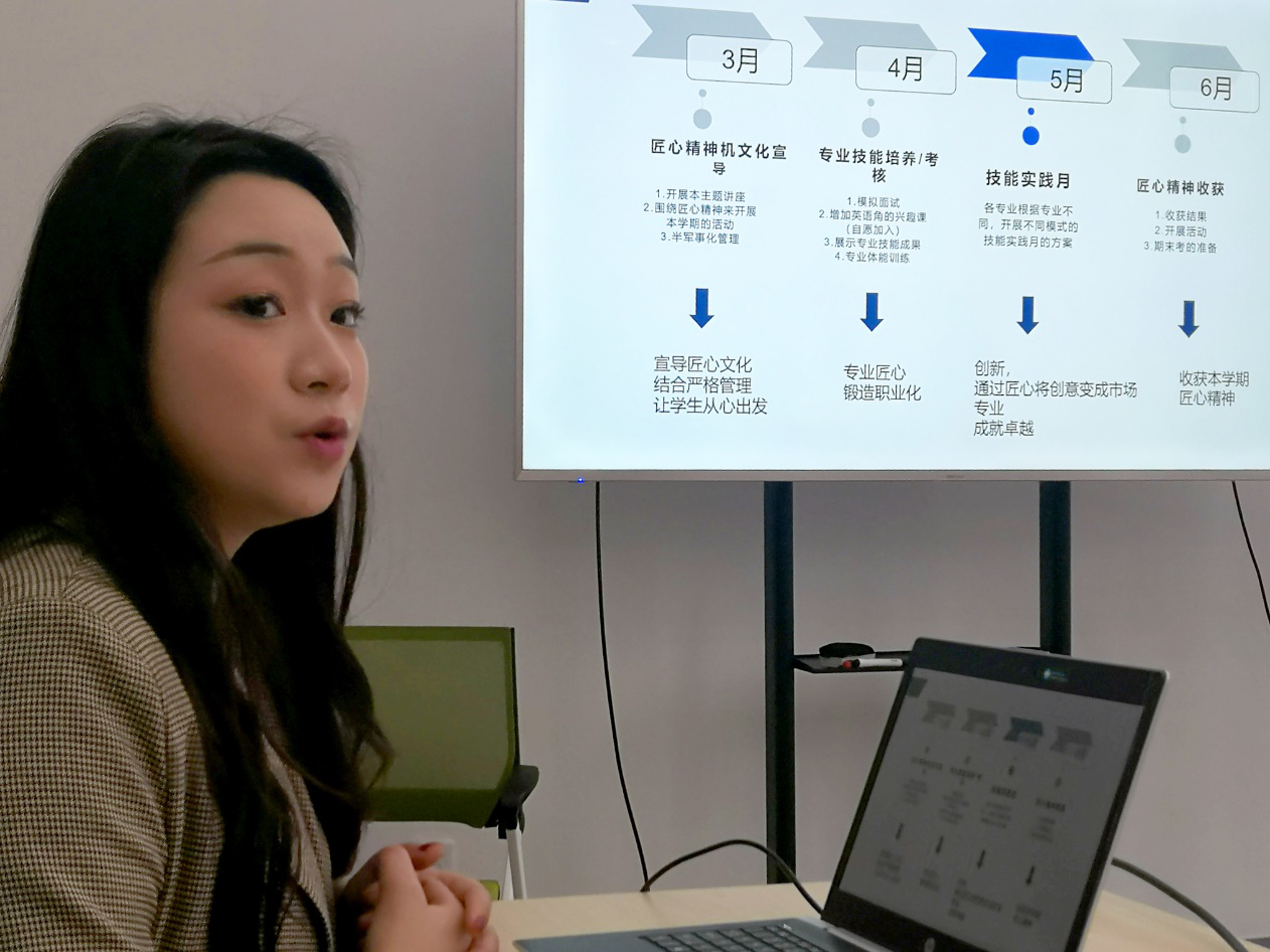 会上,职场创新教学基地和高技能培训教学点,从打造“匠心文化”、新学期工作计划以及本学期工作重点等三个方面展开交流,详细汇报了学期初“匠心文化”开展情况、安全教育、思政教育、教学管理、员工管理、师德师风建设、招生工作等重点难点工作。
