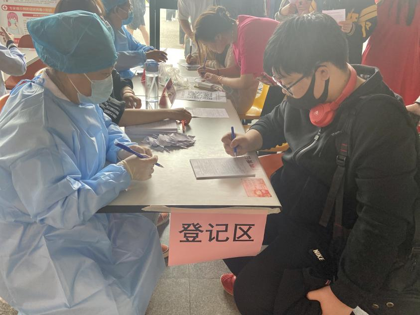 疫苗接种现场设置了登记区、接种区、休息区三大区域,每个环节都安排了志愿者进行现场引导与秩序维护。接种人员入场后,先完成登记,再进入接种区,接种完成后需在休息区留观30分钟,身体无异常反应,方可与出口处的志愿者确认后有序离开现场。
