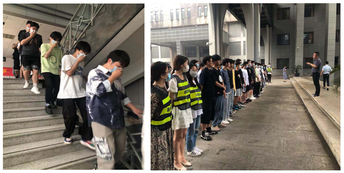 本次演练由教学点各班安全员、寝室长、全体后勤人员及辅导员老师共80余人参加。首先给全体演练人员召开主题班会观看了《防灾减灾宣传教育》视频,讲解并介绍了各类应急处理及疏散措施,提高员工遇到灾害时的自我应对措施和安全意识。视频观看结束后,教学基地后勤负责人金老师就安全疏散演练的各项细节做了具体安排,明确职责和任务。最后应急疏散演练正式开始,全体员工迅速、安全、有序地从教学楼安全通道疏散撤离,辅导员教师、各安全保障人员在楼梯、沿途和集结地指导疏散,整个过程紧张有序、无推搡拥挤和慌乱现象,顺利完成各项演练。通过这次演练,要求师生坚持“以人为本,生命至上”的原则,全面提高教学点师生避险意识,提高师生面对各类灾害时的科学避险、应急处置以及自救的能力,切实保障师生的生命安全。让全体师生意识到在日常学习和生活中提高安全意识、学习防灾减灾常识及应急自救措施的重要性。