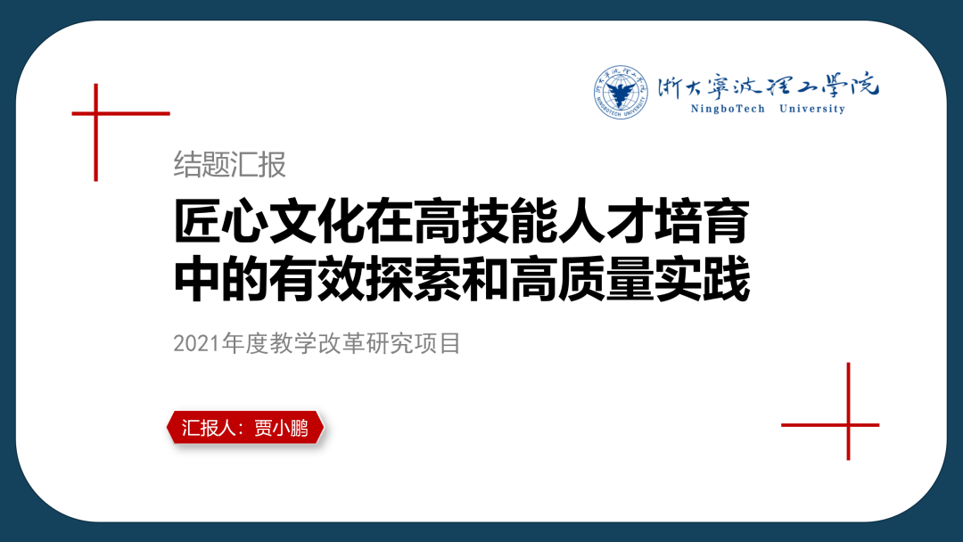 本课题研究针对匠心文化相关课程体系进行了整合梳理,并集结成册。基于高技能人才培养构建产学研育人模式,并针对不同专业的人才培养特点,与相关企业进行对接,开展多元化的特色实践项目。以匠心文化为核心,构建教学体系,并在具体的实践教学过程中开展运行,形成系统性、可持续性的匠心文化教育体系。针对此次项目研究,最终形成总体研究报告,在宁波市教育局《教育参阅》第22期和yl23411永利官网登录《校情通报》2022第2期期刊上也发表了相关的教改经验成果。
