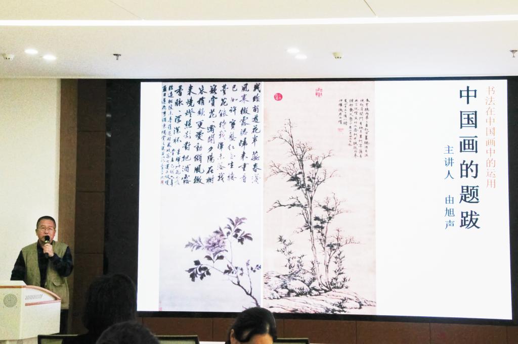 开班第一课邀请了中国美术家协会会员、中国版画家协会会员由旭声教授讲述《书法艺术在中国画中的应用——中国画的题跋》,带领学员们体会“以形写神,以形写意”的美学意境。