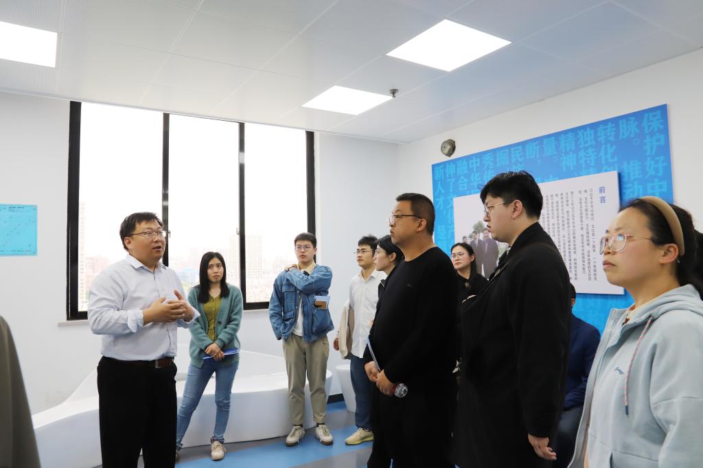 实验室参观环节由计算机与数据工程公司党委书记、副经理于欣,机电与能源工程公司科研助理任聪杰两位老师带领,两位教师就实验室的研究成果和应用情况进行详细介绍,学员们沉浸式体验了数字技术在文化传承创新方面的应用。