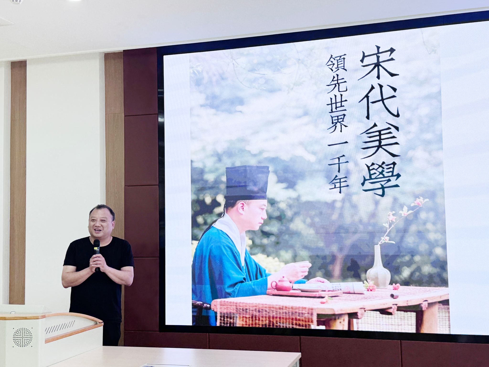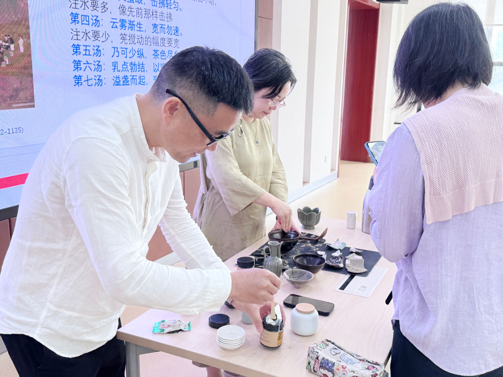 “宋代生活四艺”培训班聚焦宋代生活美学核心——焚香、点茶、插花、挂画,通过理论讲解与实践操作相结合的方式,让教师们沉浸式体验宋代文人雅士的生活情趣。学员们在专业老师的指导下,亲手尝试点茶技艺,感受茶叶在盏中变幻出的独特韵味;学习插花艺术,领悟如何以自然之美营造诗意空间;参观“宋瓷之韵”美育教育数字展,感悟数字技术宋瓷文化交融的魅力。