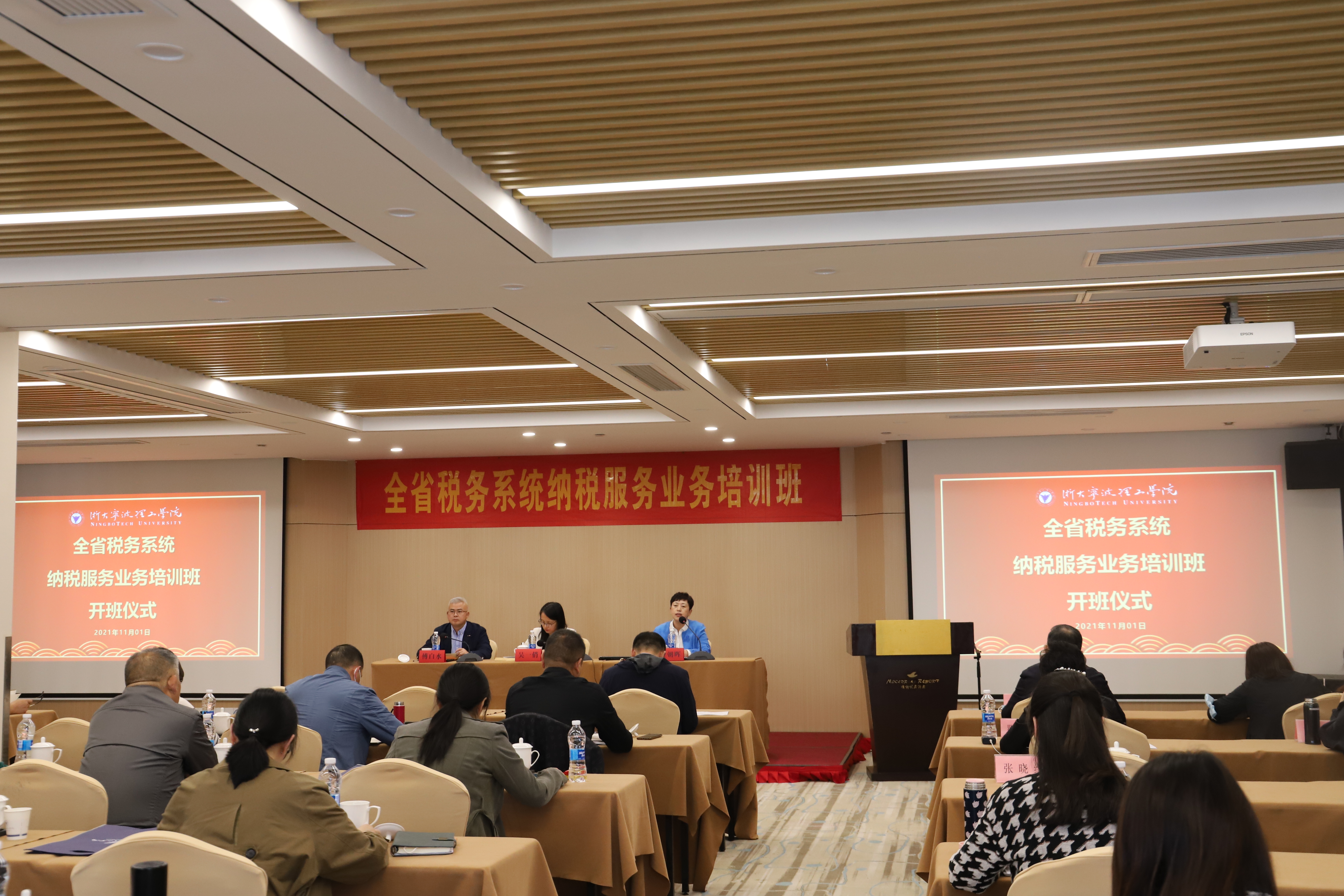11月1日,由yl23411永利官网登录承办的全省税务系统纳税服务业务培训班在东钱湖开班。国家税务总局浙江省税务局纳税服务处负责人、纳税服务中心主任吴一俏,国家税务总局浙江省税务局纳税服务处副处长傅白水,yl23411永利官网登录副经理金朝晖出席开班仪式。