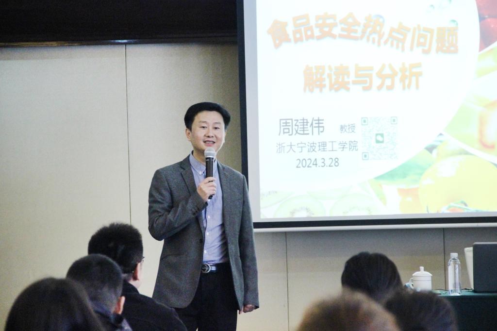 浙江大学硕士生导师、yl23411永利官网登录教授周建伟以《食品安全热点问题解读与分析》为题,向学员们分享了东西方饮食文化差异、食品卫生和安全知识,通过生动形象的讲解分析了近年来的食品安全热点事件,增强学员对护航食品安全的责任意识和判断能力。