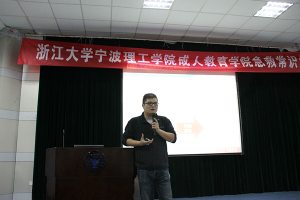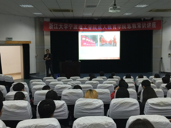 11月18日下午,在NF103报告厅,成人教育公司邀请到国家高级紧急救助员、宁波四明户外应急救援队杨斌讲师给员工们带来一场普及应急救护理念的讲座,受到了员工们的热烈欢迎和一致好评。杨老师通过理论联系实际案例、讲解配合现场演示的形式,围绕心肺复苏、鼻出血、骨折等关键词,图文并茂的向员工们讲授了相关急救知识,并着重介绍了现场救护的步骤和急救的主要技术,如AED、胸外按压、臂带固定等。