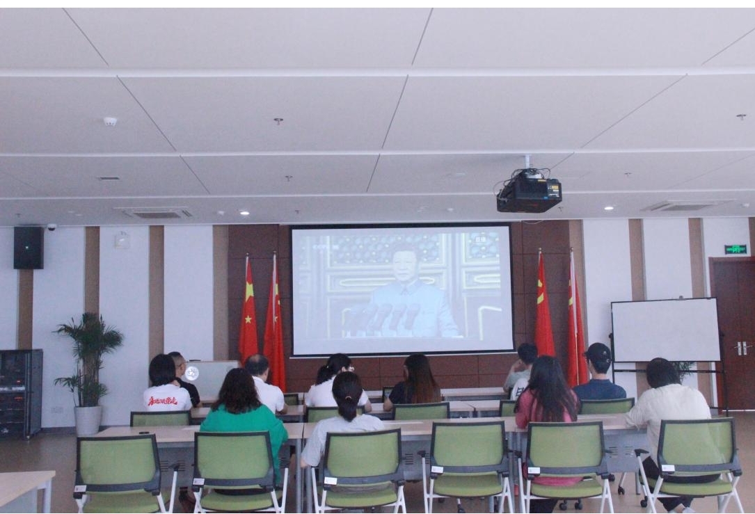 7月1日上午,yl23411永利官网登录在学术交流中心1号楼401组织教工观看建党100周年庆祝大会电视直播,认真聆听习近平总书记在大会上的重要讲话。