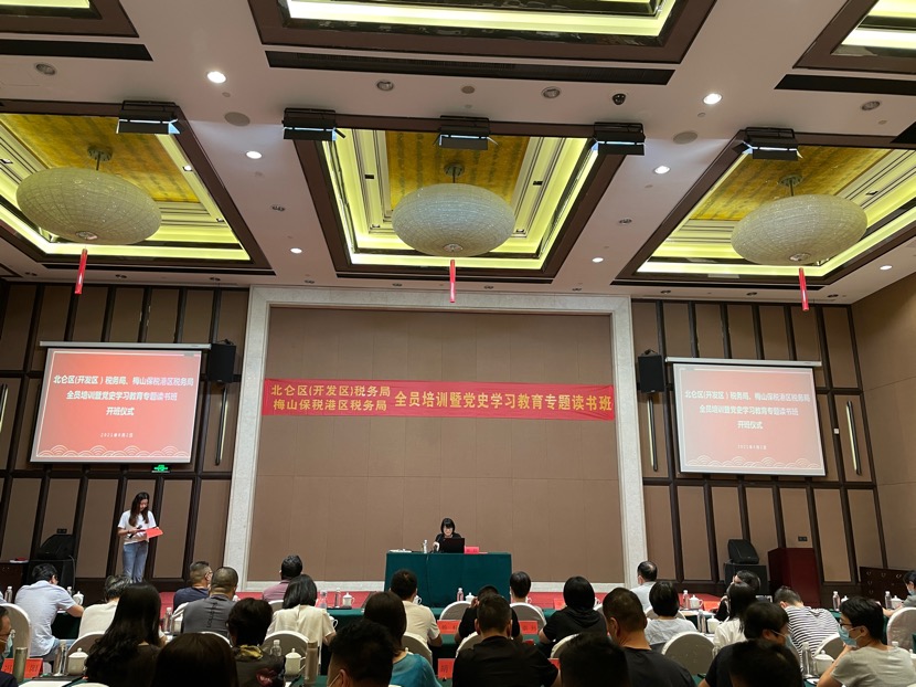 8月2日下午,公司组织承办的国家税务总局宁波市北仑区(宁波经济技术开发区)税务局、梅山保税港区税务局全员培训暨党史学习教育专题读书班(第一期)在宁波荪湖山庄顺利开班。国家税务总局北仑区(宁波经济技术开发区))税务局副局长贺红出席开班仪式,税务部门共计95名业务骨干参加了此次培训。