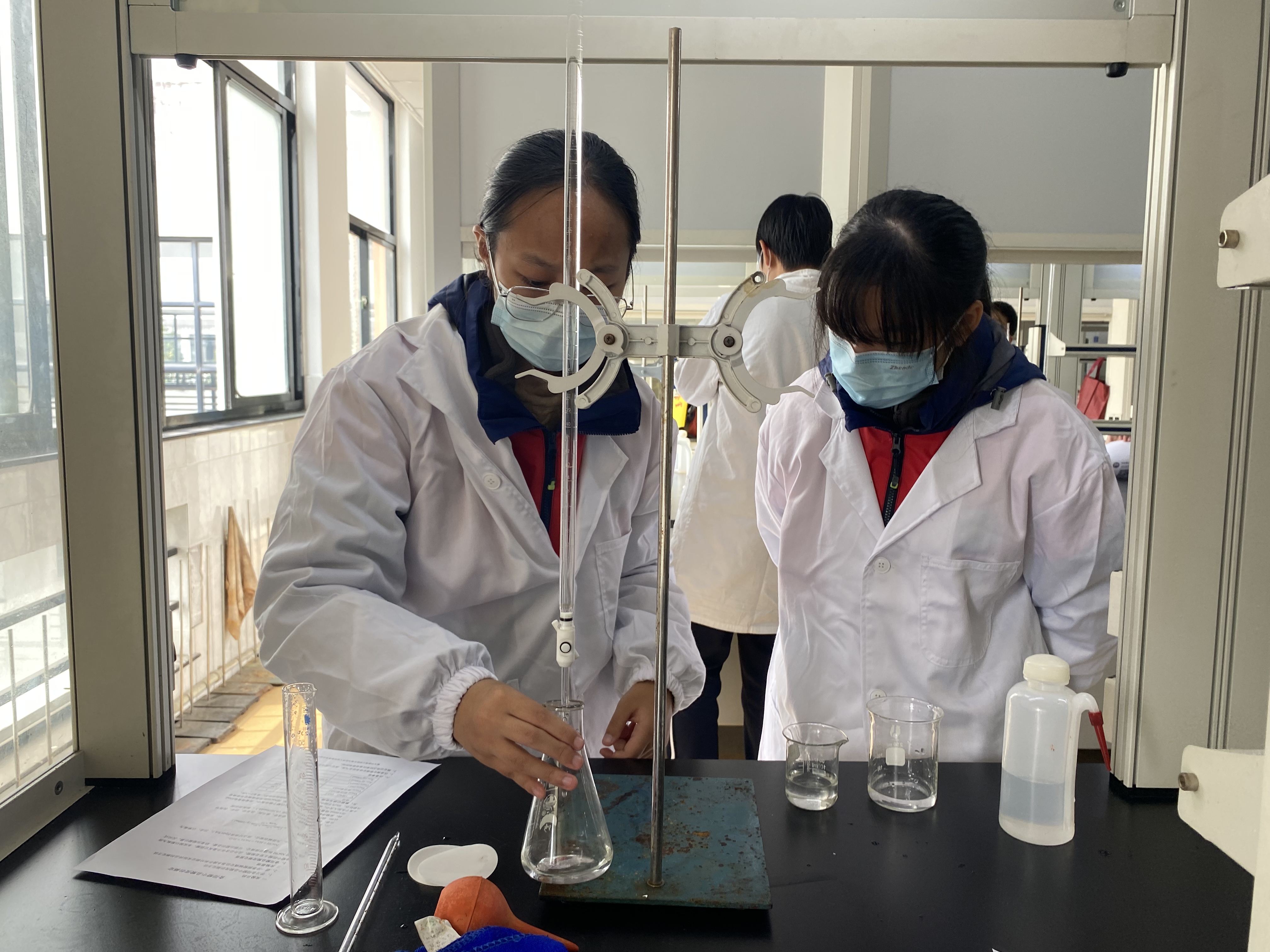 “宁波人吃红膏呛蟹时,喜欢蘸点醋,那么,你们知道自己家里的食用醋浓度是多少吗?” 19日,在yl23411永利官网登录化学实验室,高级实验师周先波带领姜山中学工科班51名高一员工边做化学实验边讲解理论知识,让员工们十分兴奋。