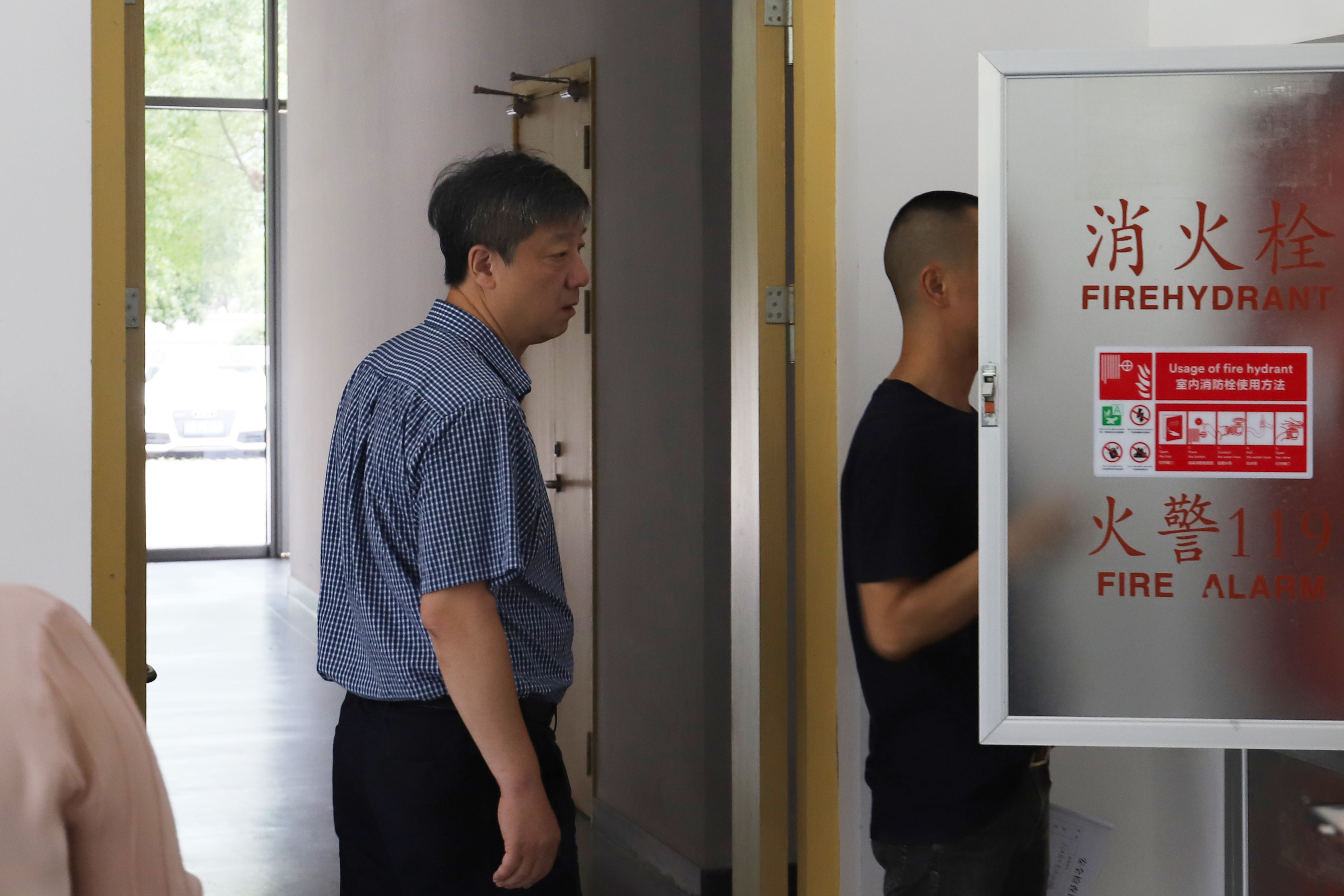 胡征宇书记一行对学术交流中心一号楼的电源总控室、网络数据服务控制室、强弱电间、办公区域等进行了详细检查,对部分存在隐患的地方提出了整改意见。