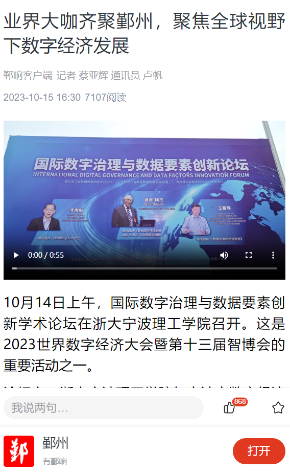 3.鄞响客户端:《业界大咖齐聚鄞州,聚焦全球视野下数字经济发展》