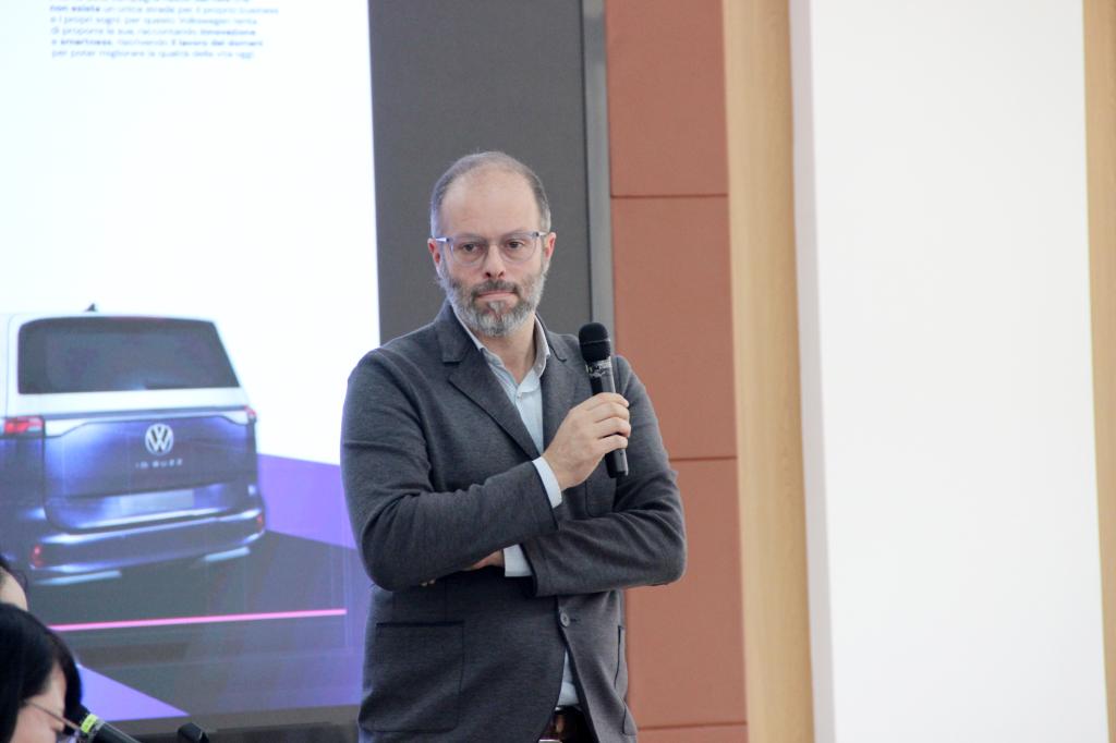 意大利设计公司经理亚力山德罗·科伦坡分享了自己对设计审美的理解。他结合意大利设计公司与服装企业、汽车企业、外贸企业的合作案例,分享了创意型设计人才的培养模式。