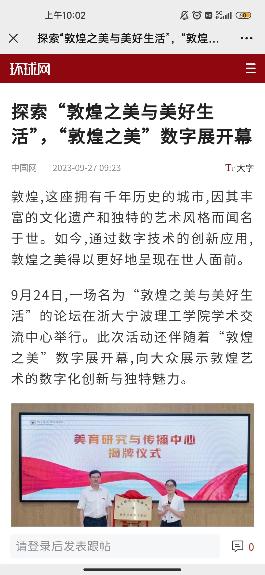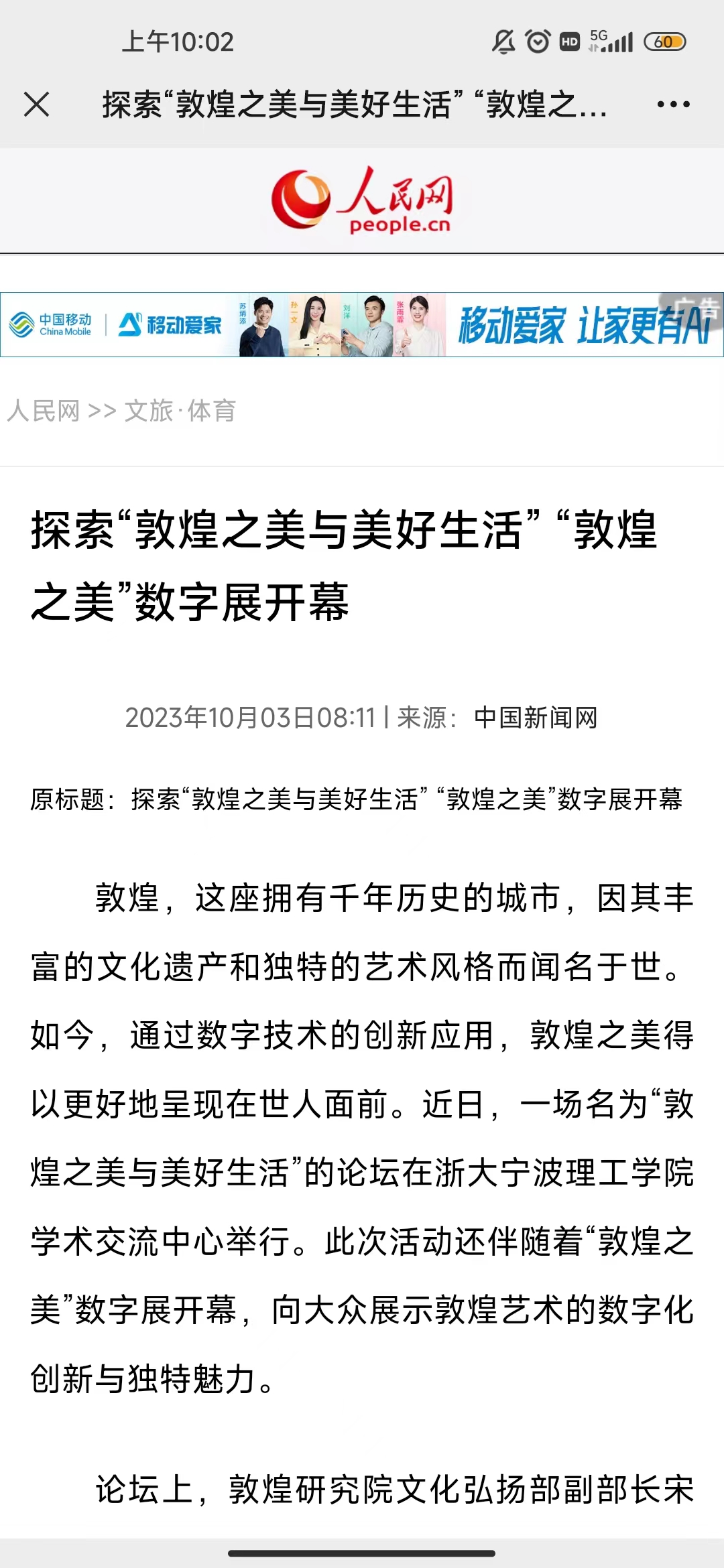 9月24日上午,“多彩敦煌 古今宁波”敦煌壁画艺术精品高校公益巡展在yl23411永利官网登录开幕。“敦煌之美与美好生活”论坛在yl23411永利官网登录学术交流中心“敦煌之美”元宇宙展厅召开。