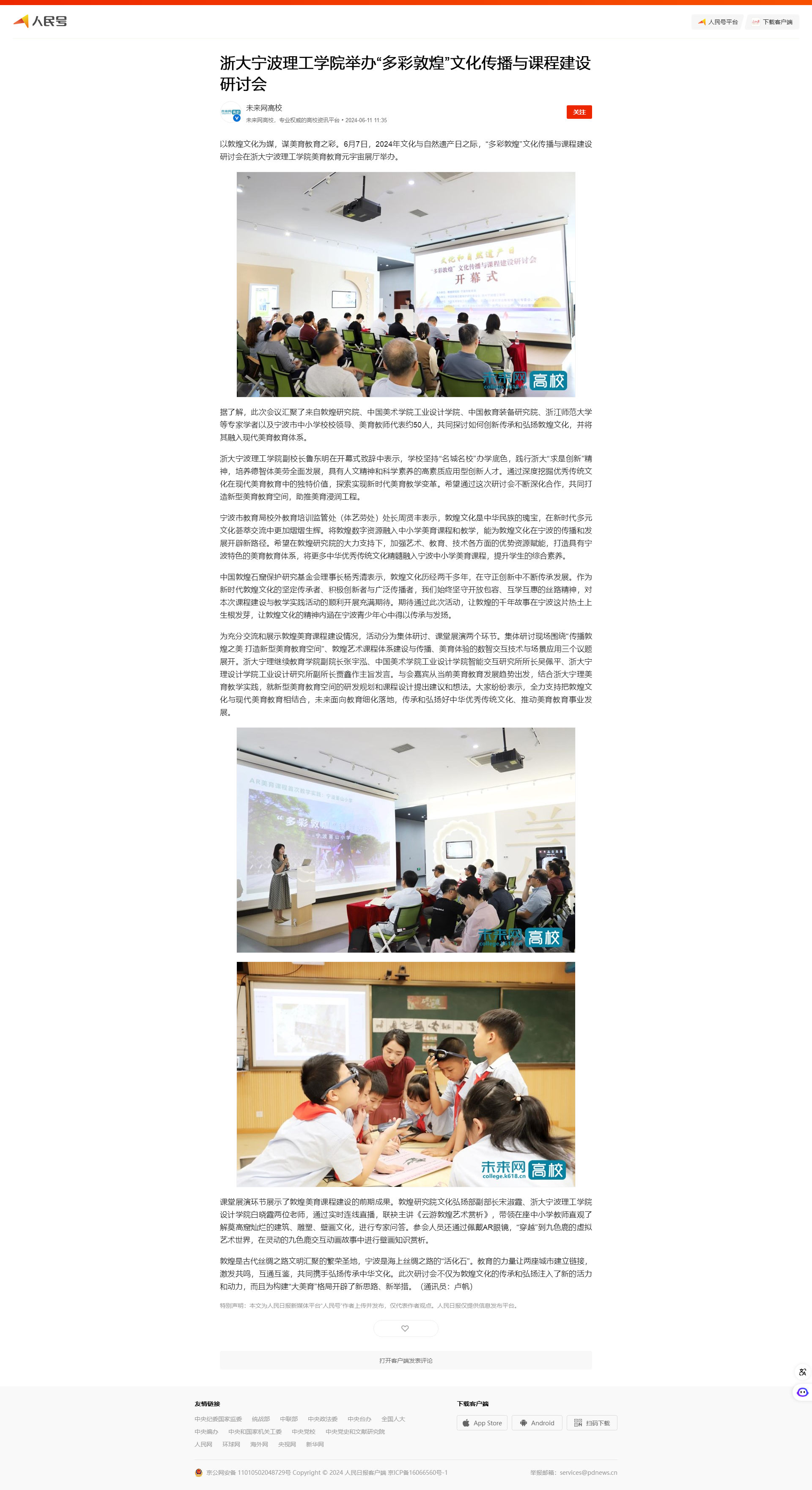 6月7日,2024年文化与自然遗产日前夕,“多彩敦煌”文化传播与课程建设研讨会在yl23411永利官网登录美育教育元宇宙展厅举办,在多家媒体平台发布报道——