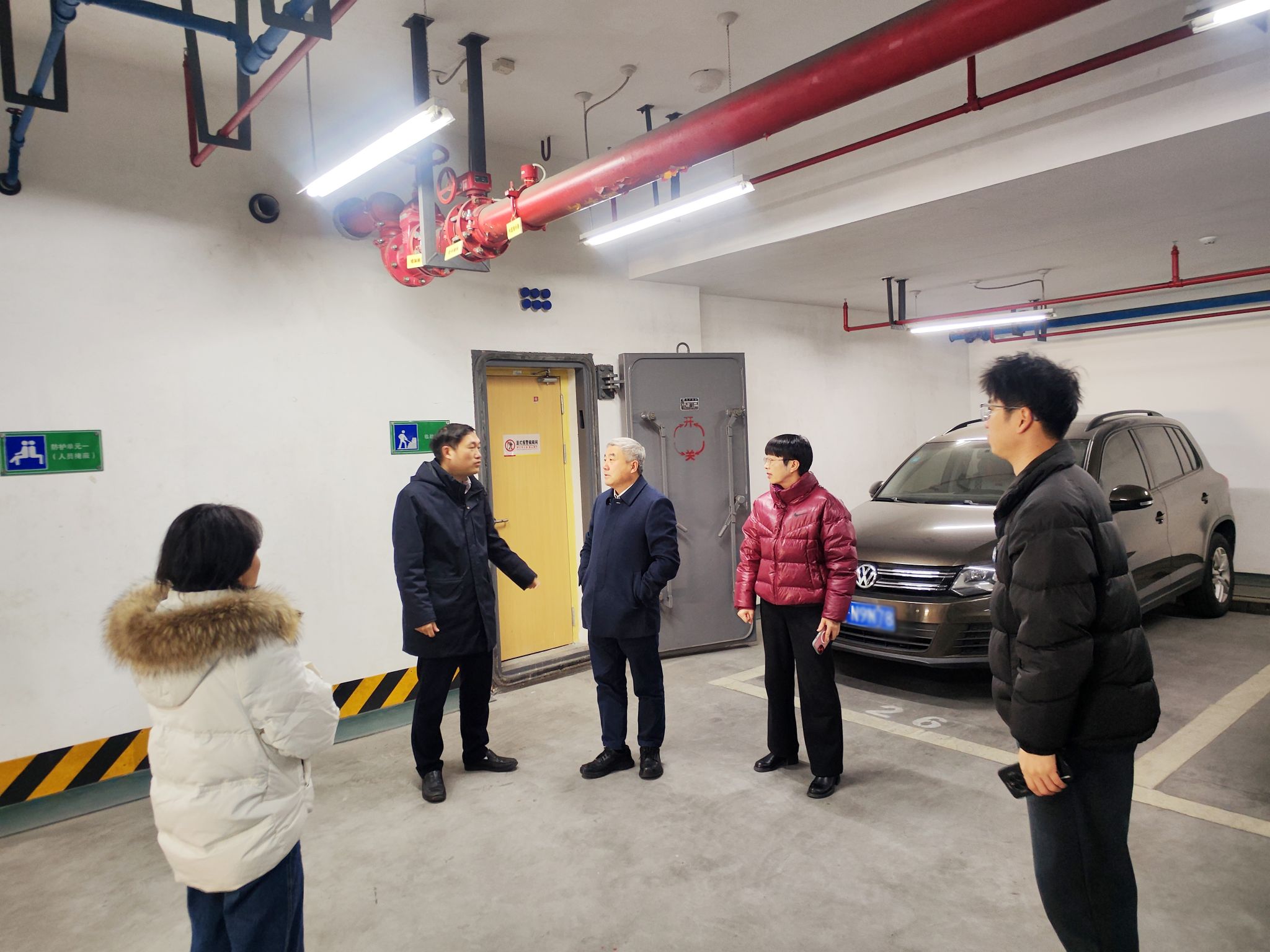 检查过程中,章献民副董事长一行对学术交流中心1号楼地下车库、仓库、强弱电间、办公区域等多个关键区域进行了细致入微的检查,仔细查看了车库的环境卫生、消防设施以及车辆停放情况,对仓库防火防潮措施,办公区域的整洁度、安全出口以及消防设施进行了全面检查。章献民副董事长仔细询问了电力设备的运行状况和维护情况,并要求相关人员加强日常巡查。他提出,安全工作是公司发展的基石,必须时刻绷紧安全这根弦,确保各项安全工作落到实处。