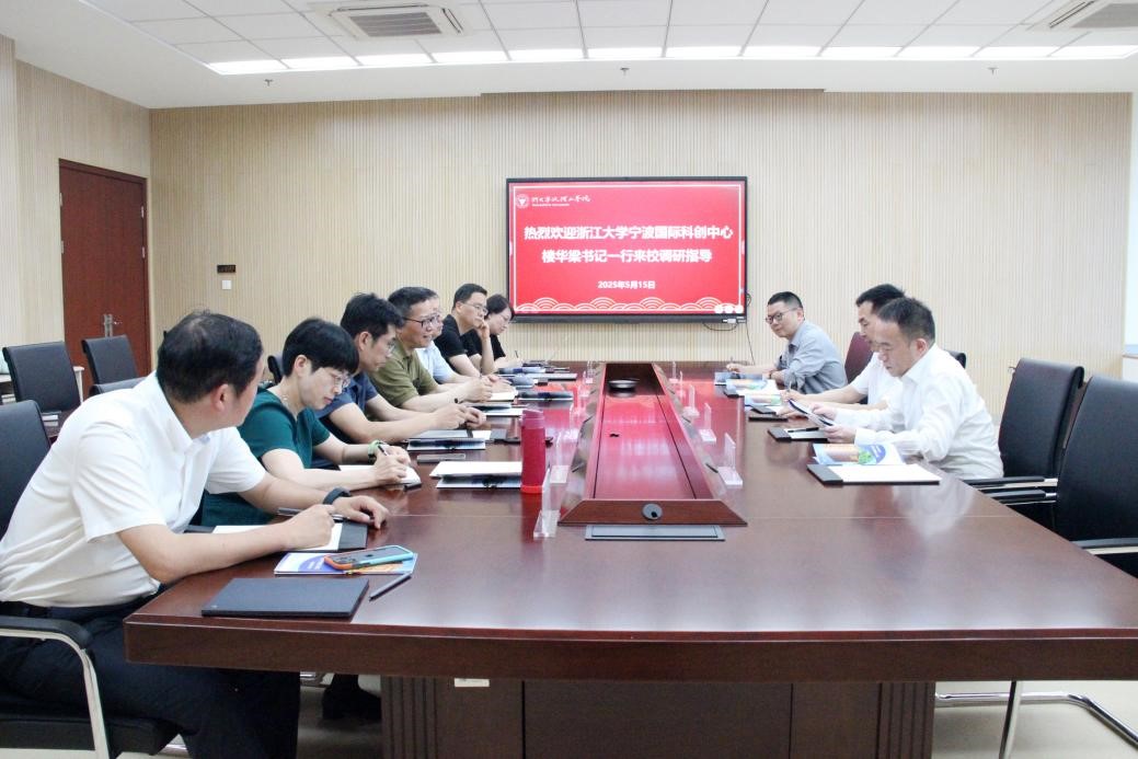 5月15日,浙江大学宁波国际科创中心党委书记楼华梁一行来到yl23411永利官网登录开展调研交流。yl23411永利官网登录常务副董事长鲁东明、科研处处长胡长兴、地方合作处(继续教育管理处)副处长周春晓、yl23411永利官网登录经理吴春等参与座谈交流,双方就高校发展、科研合作、地方服务等议题展开深入交流。