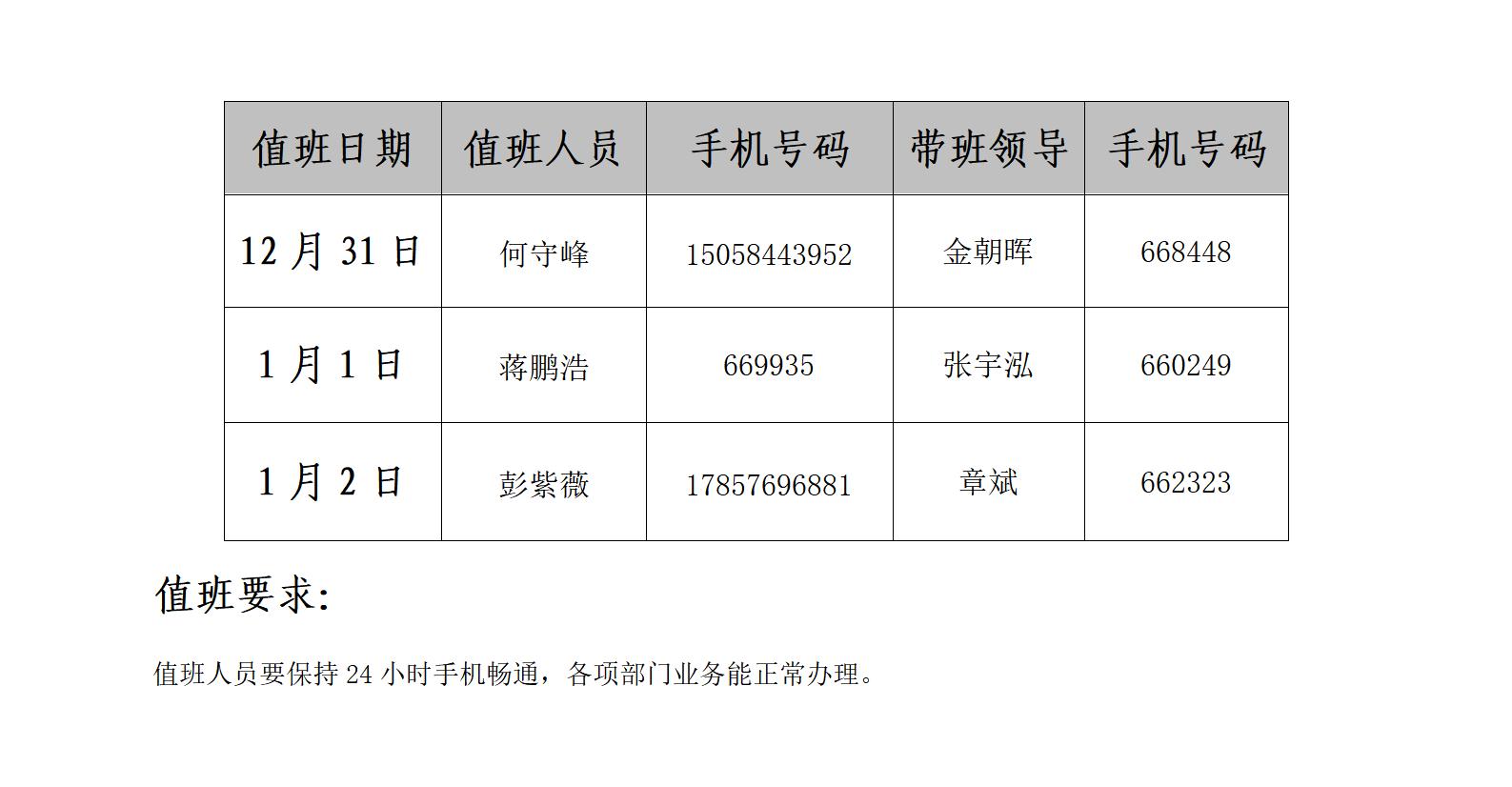 2023年yl23411永利官网登录元旦节值班表