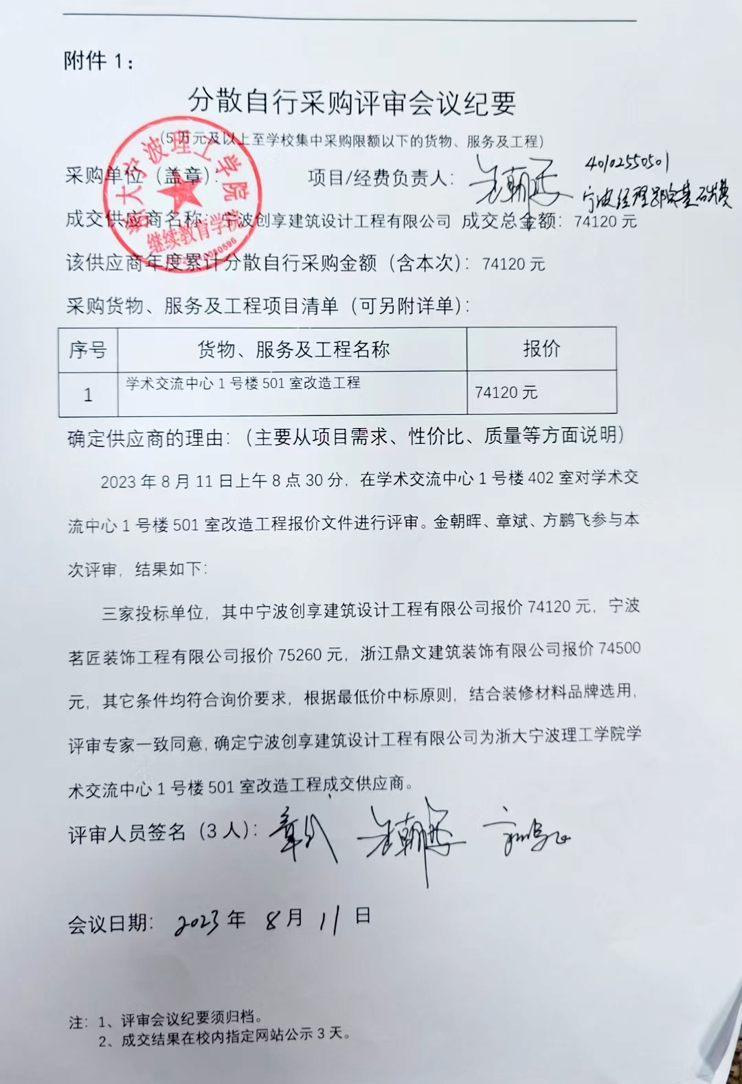 yl23411永利官网登录关于学术交流中心1号楼装修改造工程项目分散自行采购结果公示