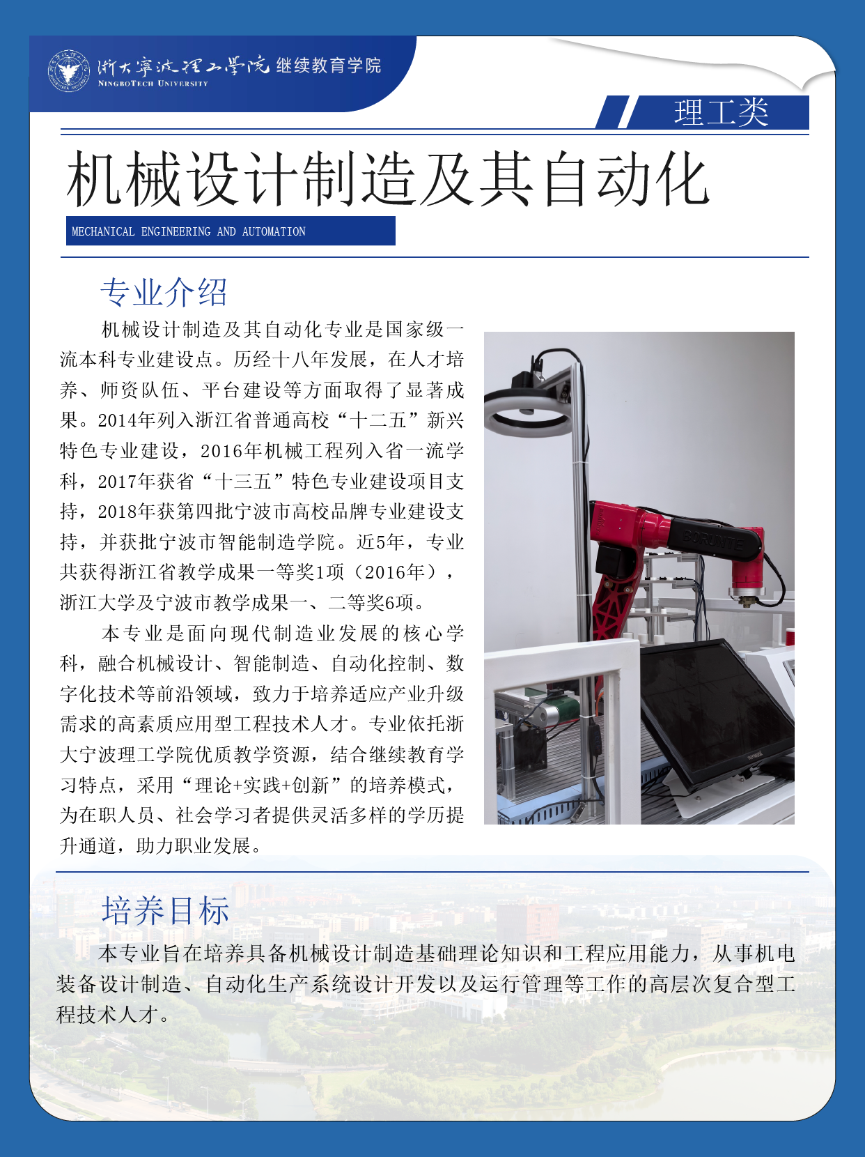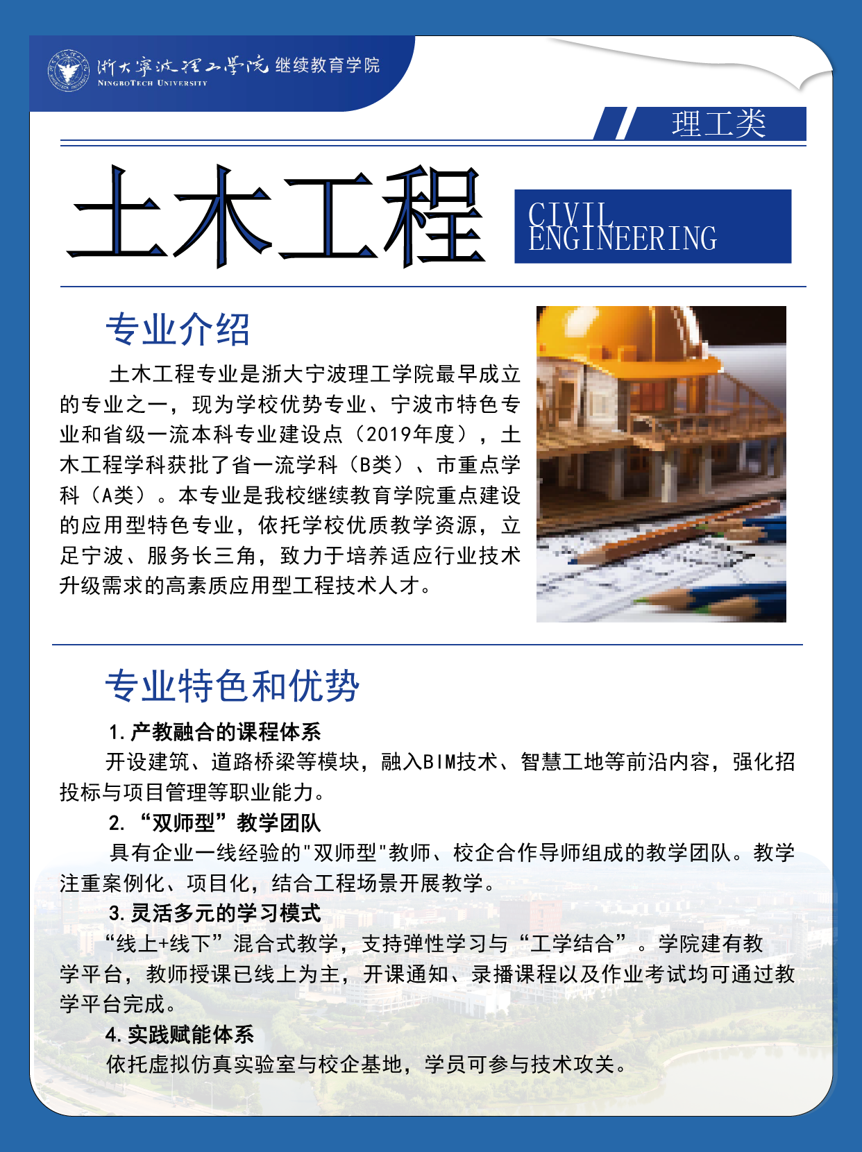 根据《浙江大学宁波理工公司关于印发〈浙江大学宁波理工公司“十三五”事业发展规划〉的通知》,《浙江大学宁波理工公司关于印发〈浙江大学宁波理工公司继续教育(成人教育)办学项目管理办法〉的通知(2019)》,公司将成人学历继续教育纳入公司整体发展规划与人才培养体系。建立健全成人高等学历教育招生、录取、教学、考试、学籍等工作的管理制度。目前开设14个专升本专业。(注:浙江大学宁波理工公司于2020年1月更名为yl23411永利官网登录。)